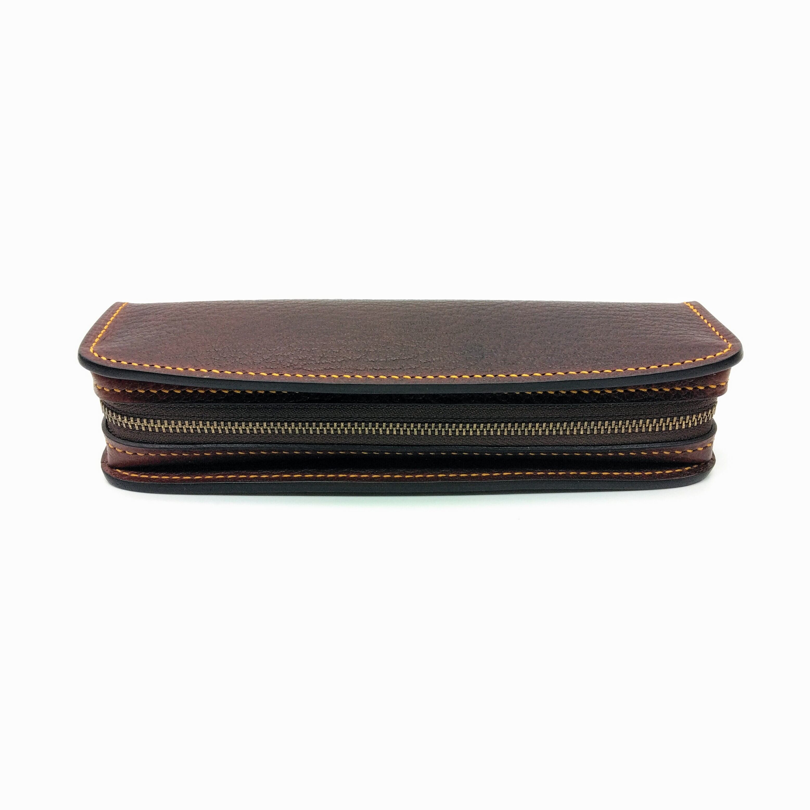 大容量のペン入れはボリューム感のあるカジュアルな見た目の物が多いですが、こちらは開口部をビジネス鞄のような作り(縦を長くして持ち手を付けたらすっきりとしたビジネス鞄になります)にする事で、大容量でもすっきりとした見た目になっています。