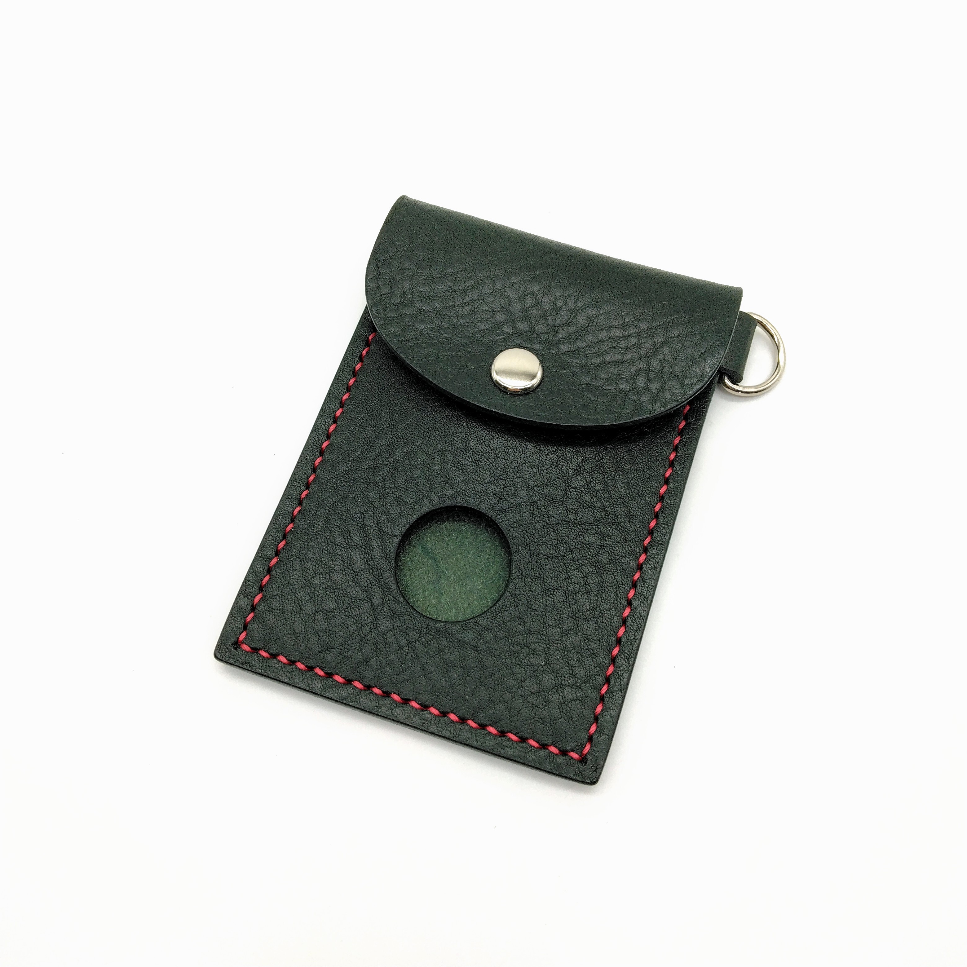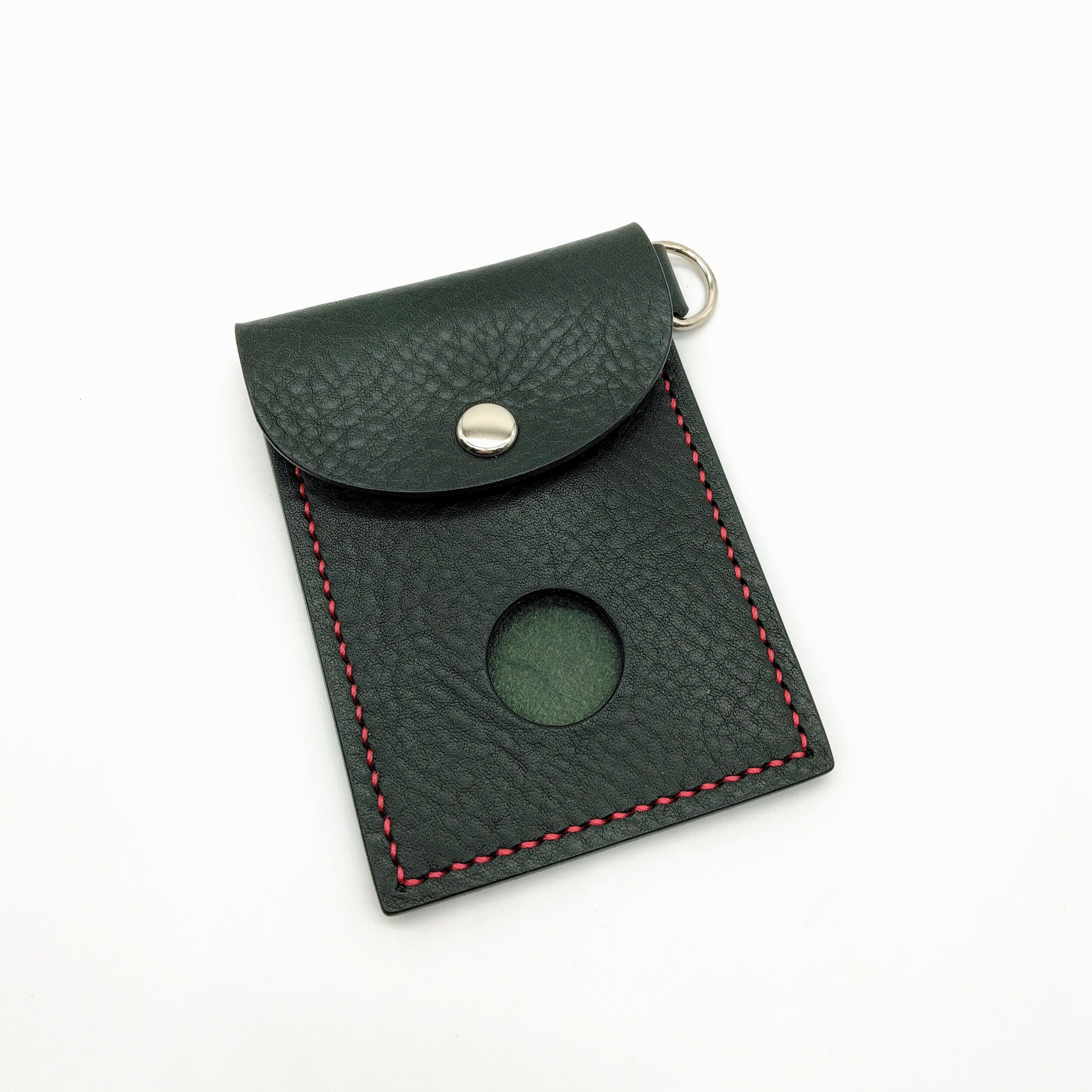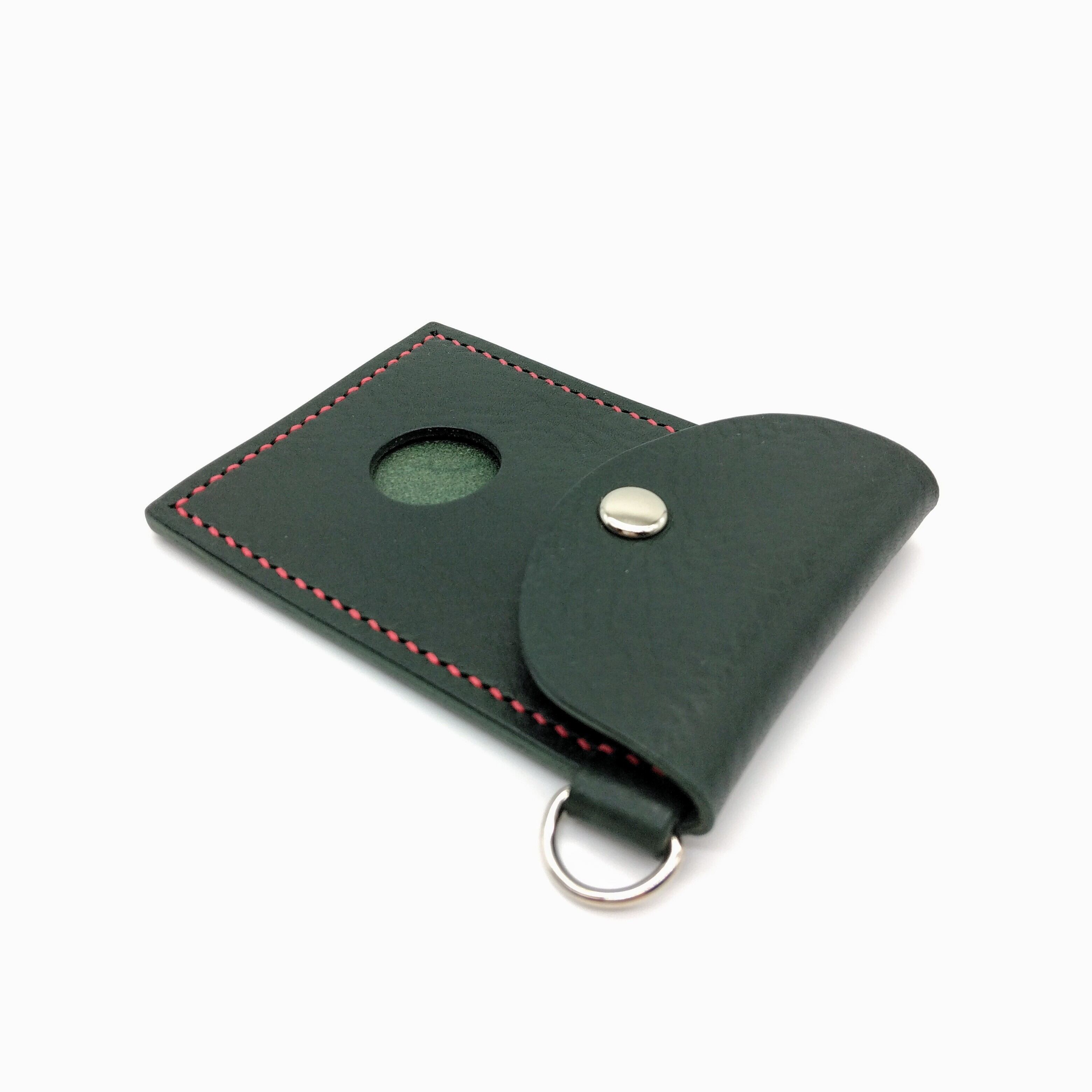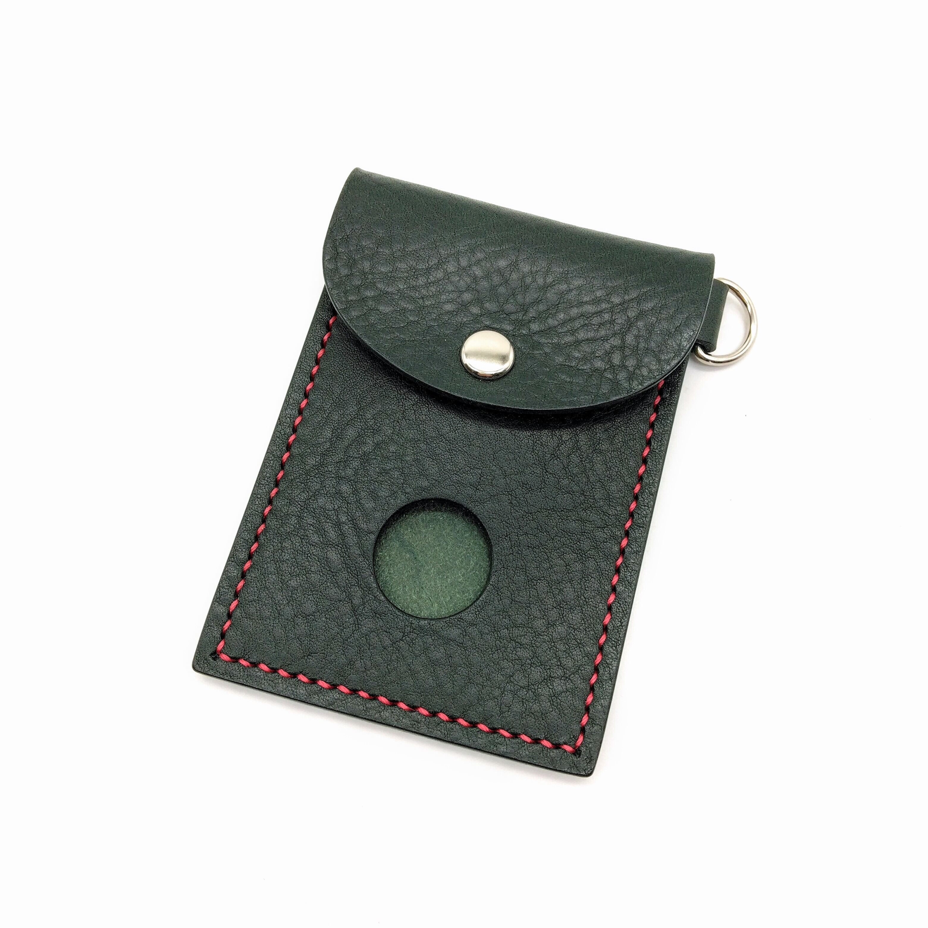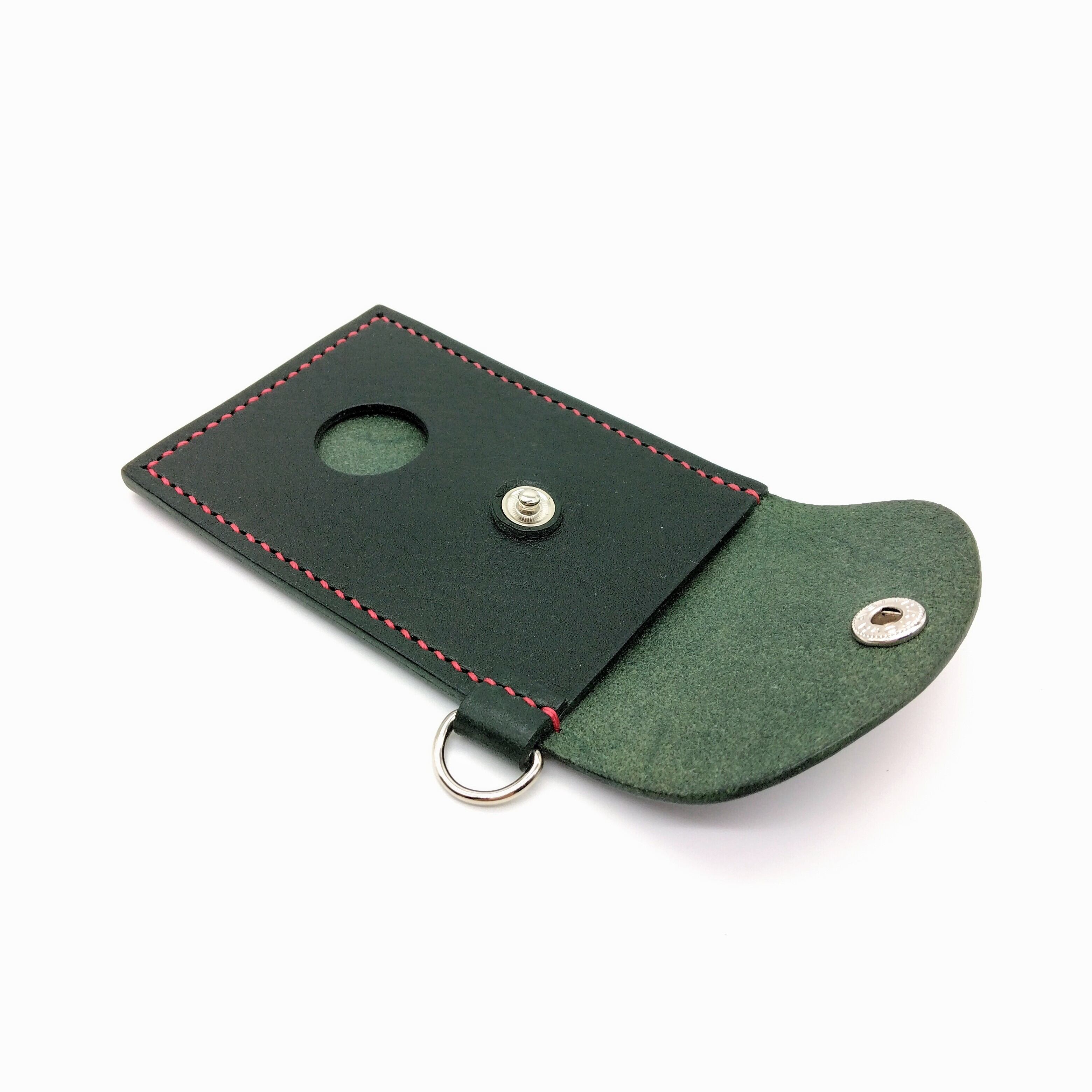 かぶせ蓋がついた形が特徴のICカード入れです。