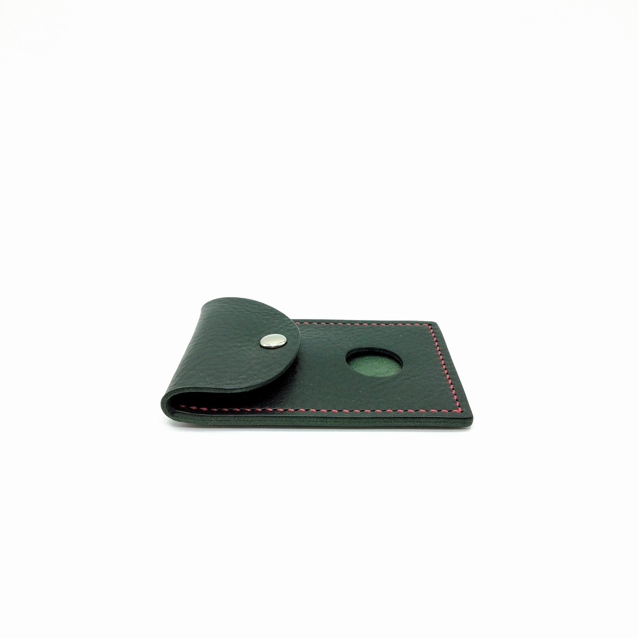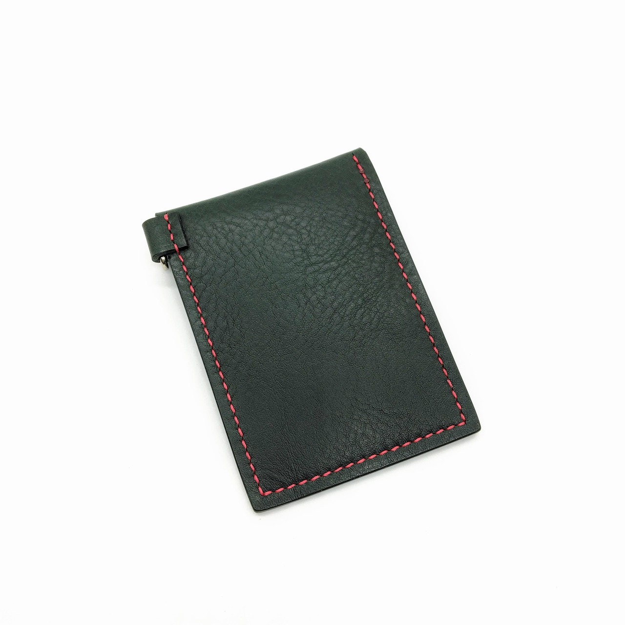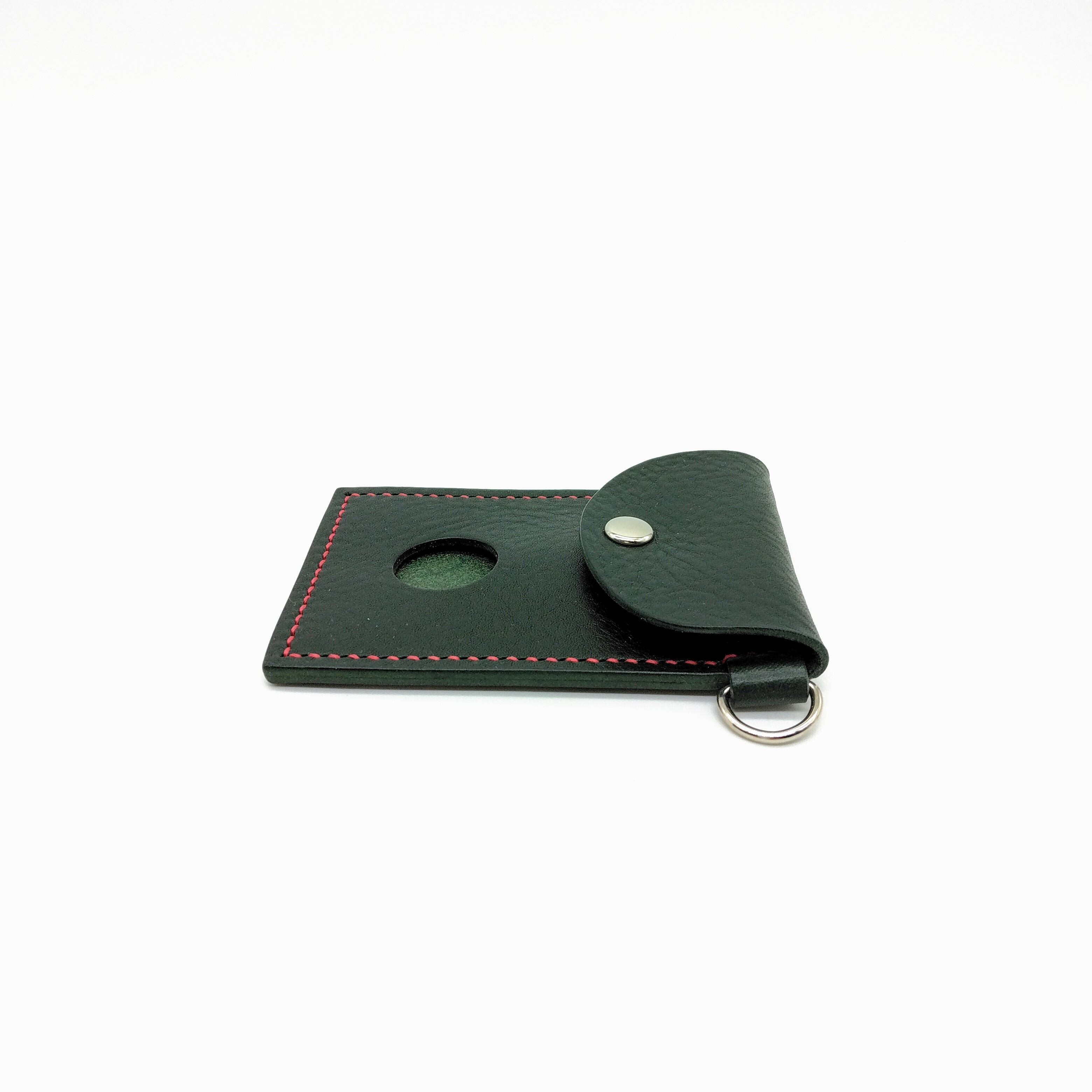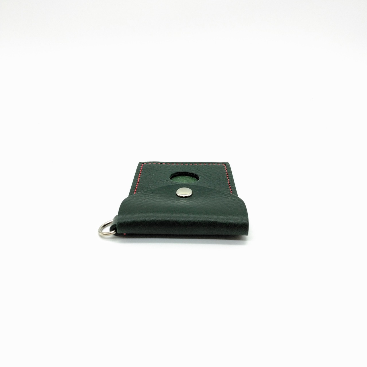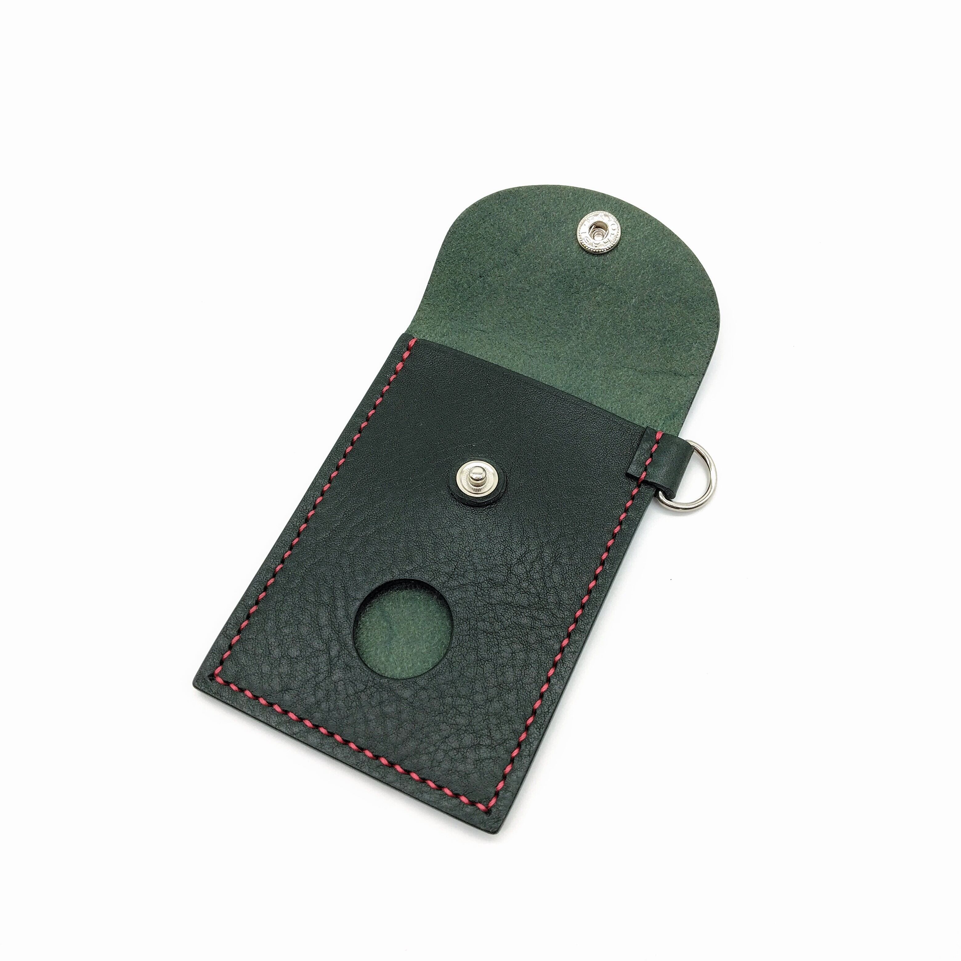 かぶせ蓋がついた形が特徴のICカード入れです。