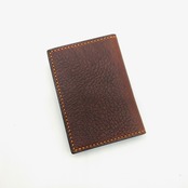 国産の素上げ(表面加工をほとんど施さず、革素材そのものに近い仕上げ)の革です。当工房で手揉み(四方八方から革を手で揉みほぐしてシボをつけるやり方)をしています。経年変化の速度はゆっくりですが、使っているうちに徐々に深みのある色合いに変化していき、渋味の増していく革です。