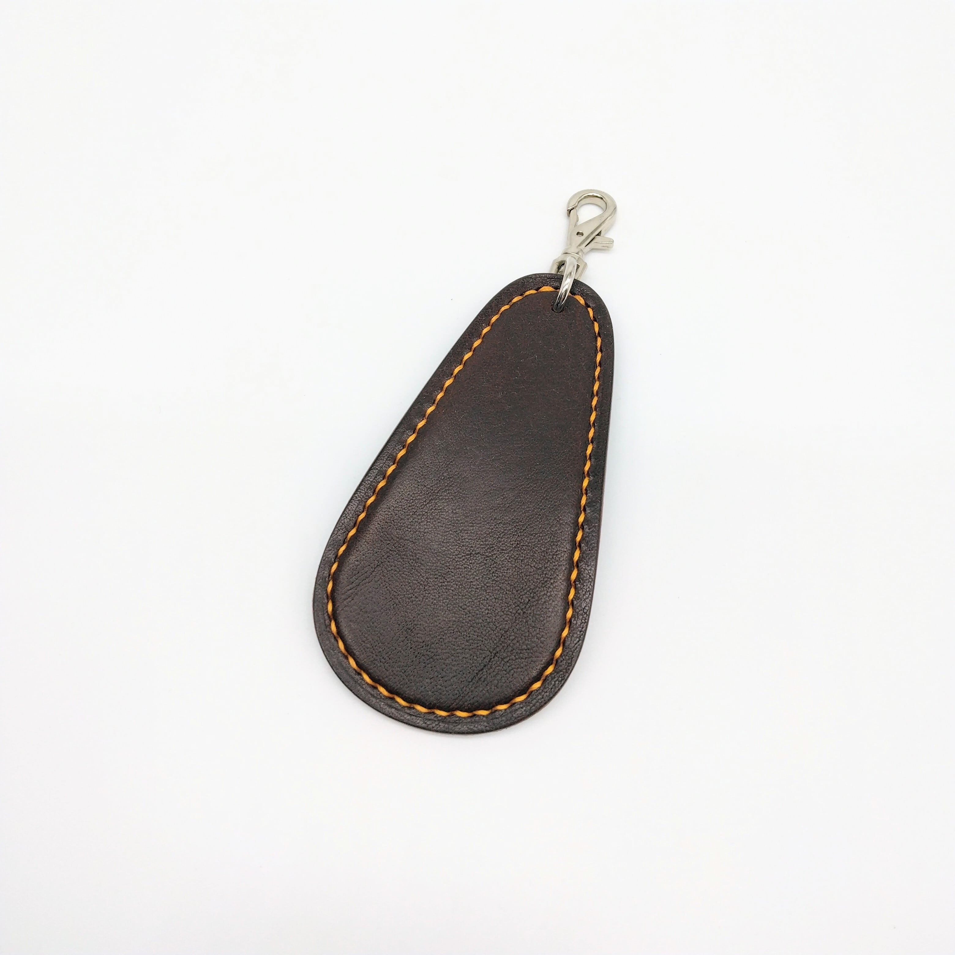 革だけで作るとどうしても型崩れをしたり柔らかくなってしまい靴べらとして使えなくなってしまいますが、金属製の靴べらを革ではさんで縫っているため型崩れせず長く使う事が出来ます。