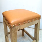 座面がボロボロだった古い椅子を革張りに直した椅子です。