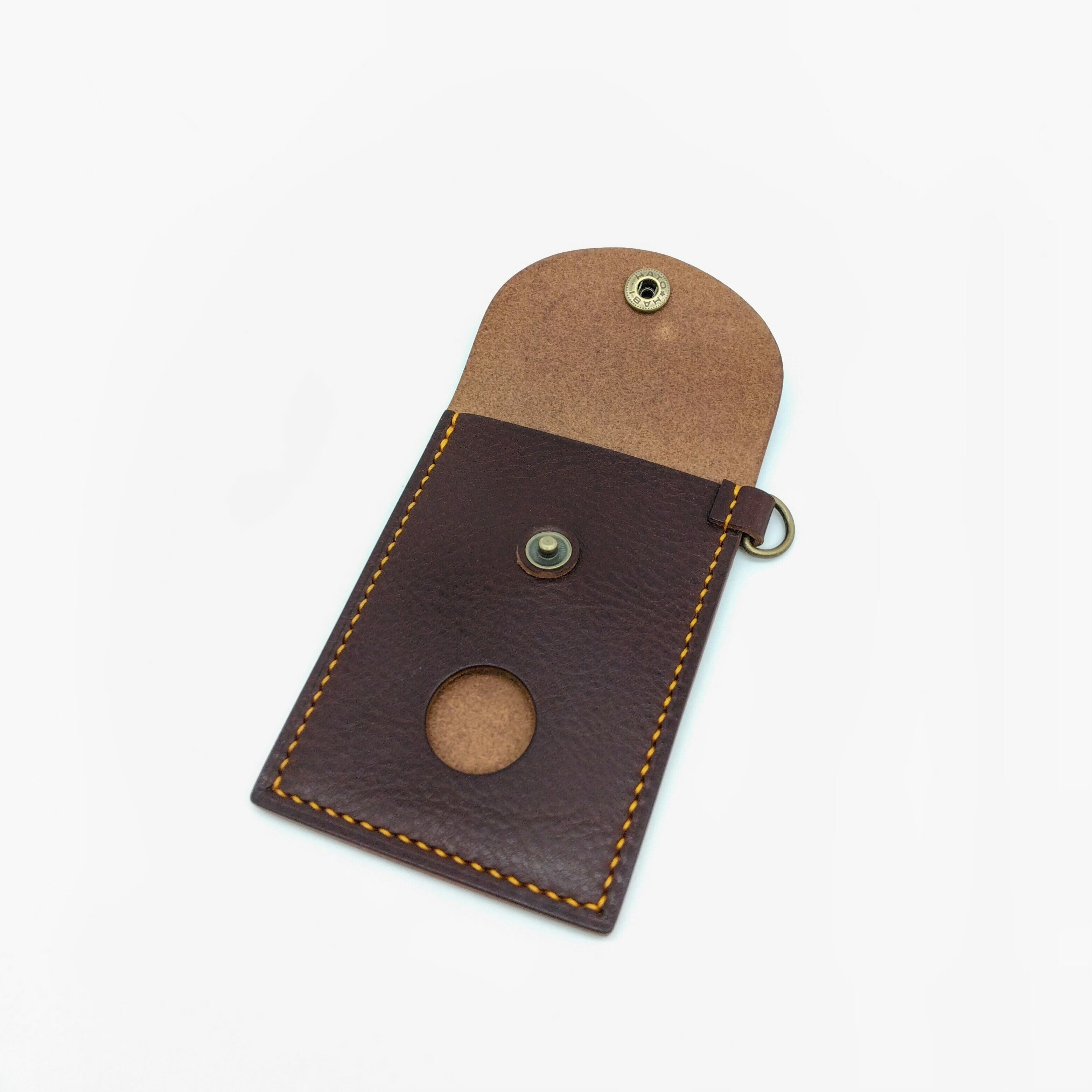 かぶせ蓋がついた形が特徴のICカード入れです。