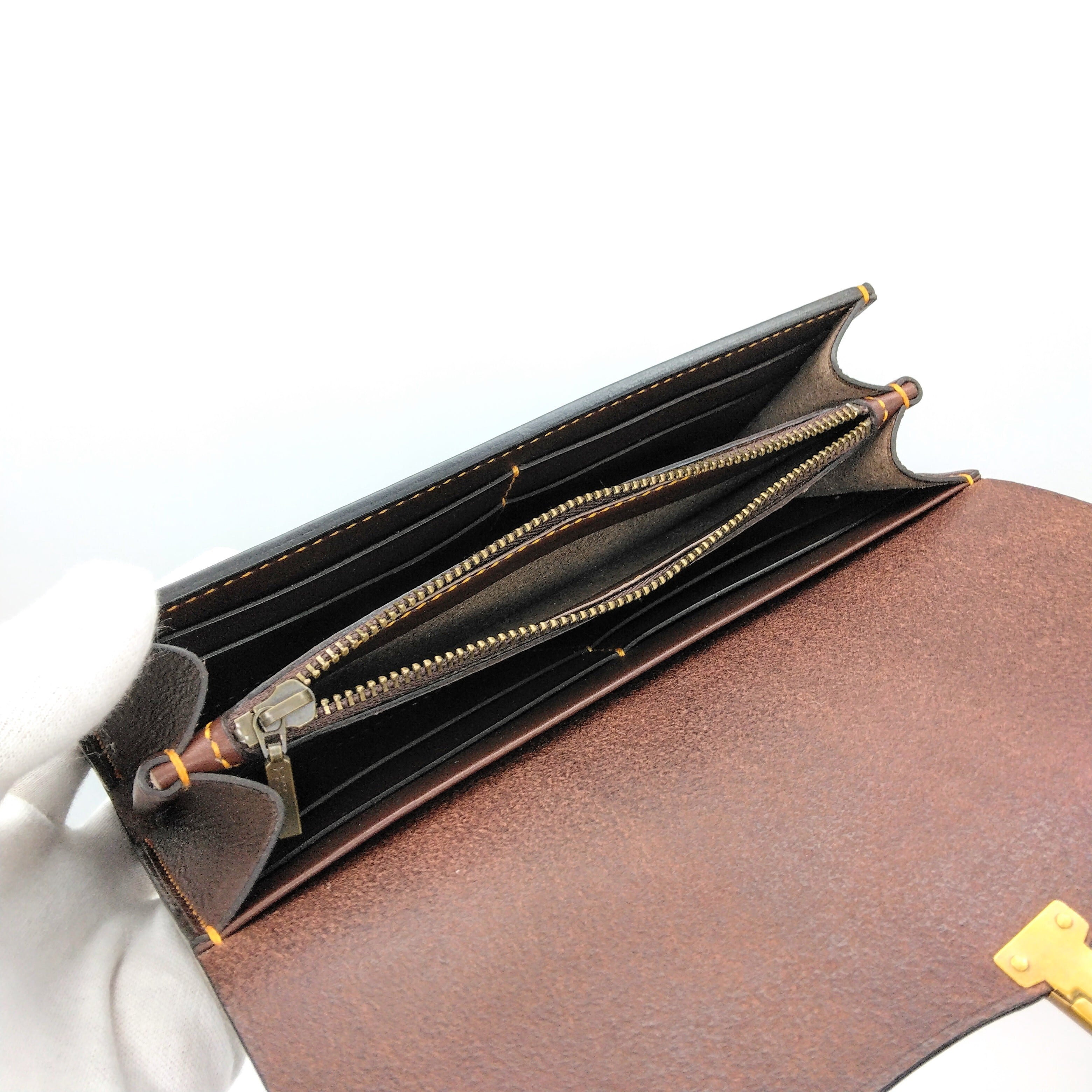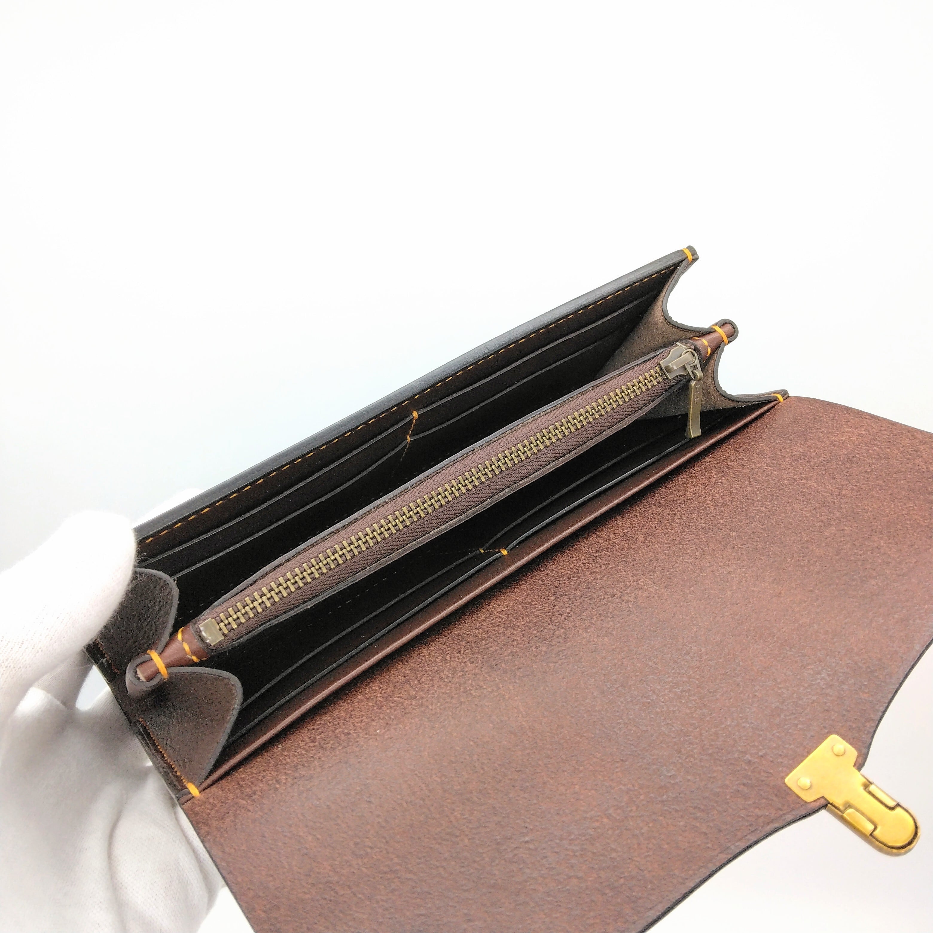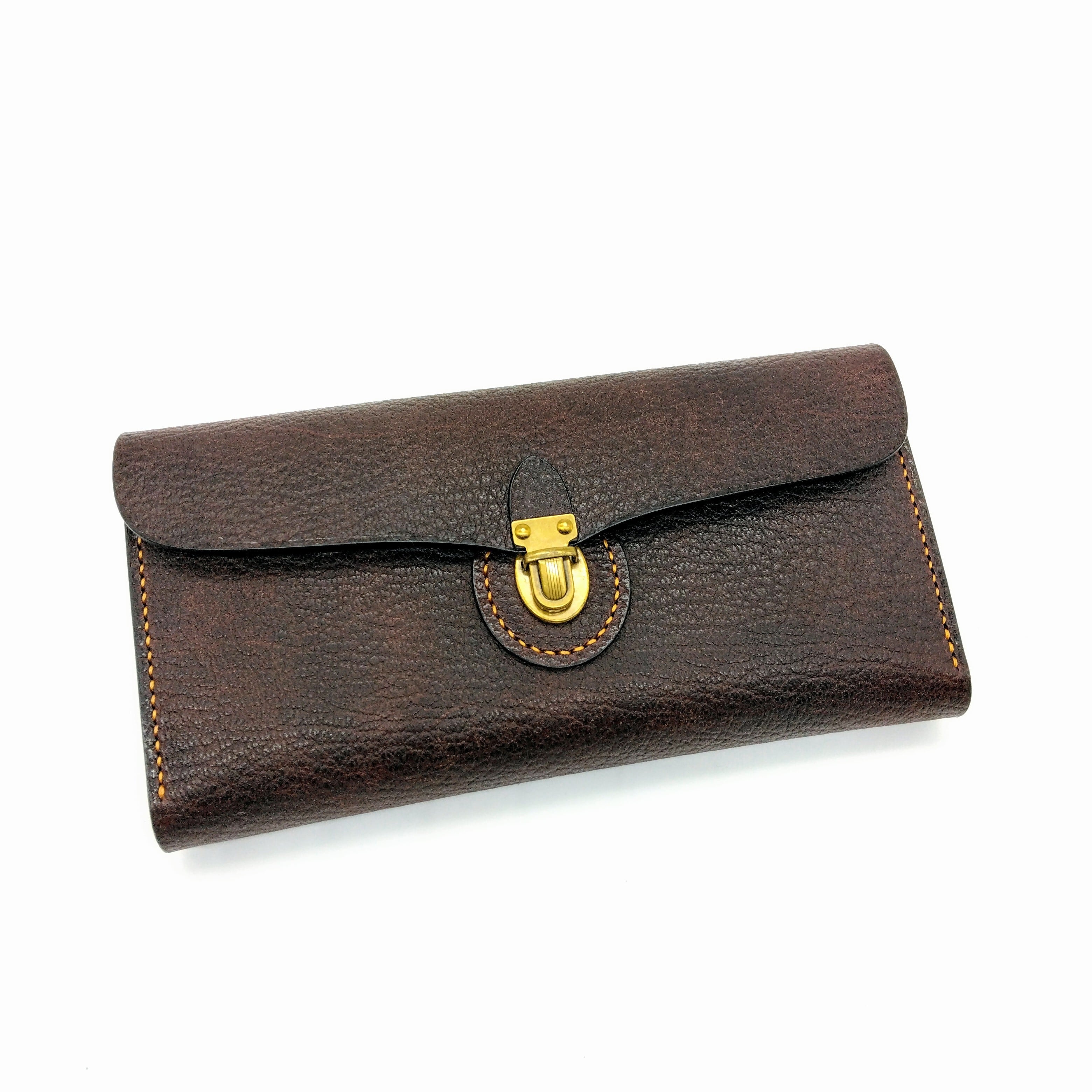 小ぶりの差し込み金具がポイントの長財布です。
