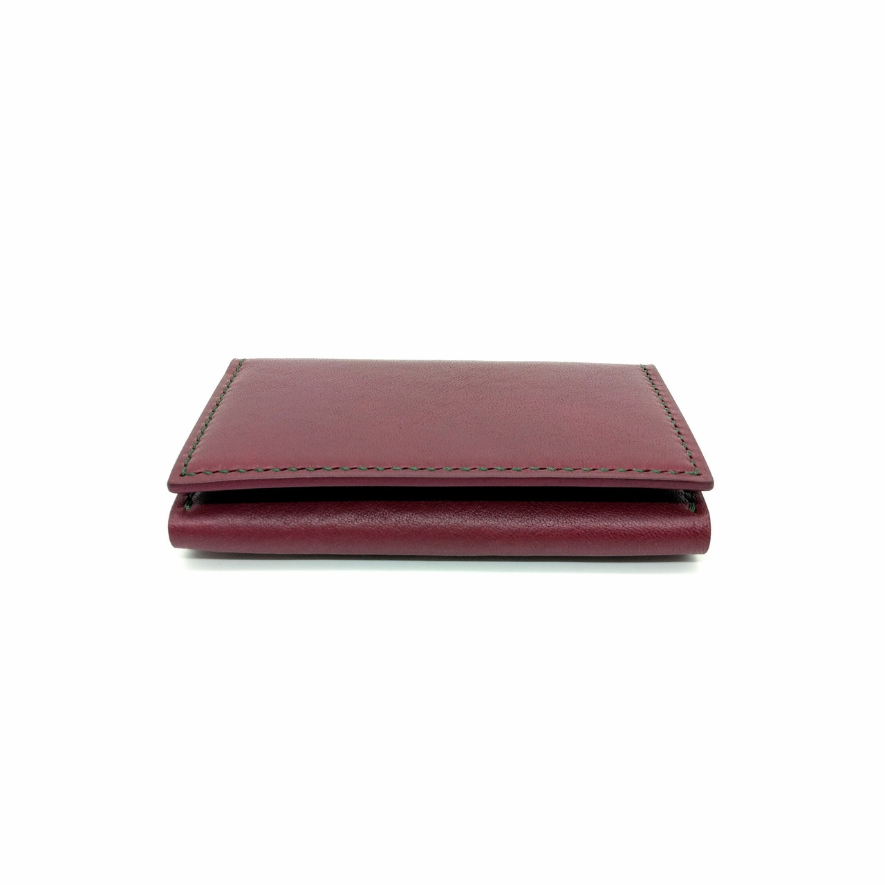 開くとかぶせ部分と本体部分にマチ無しのポケットがあります。すぐに出す分の名刺や頂いた名刺を分けて収納できます。本体マチ無しポケットの下がメインの収納部分になります。メインの収納部分は5㎜程のスペースがあり、名刺を20枚程収納出来ます。