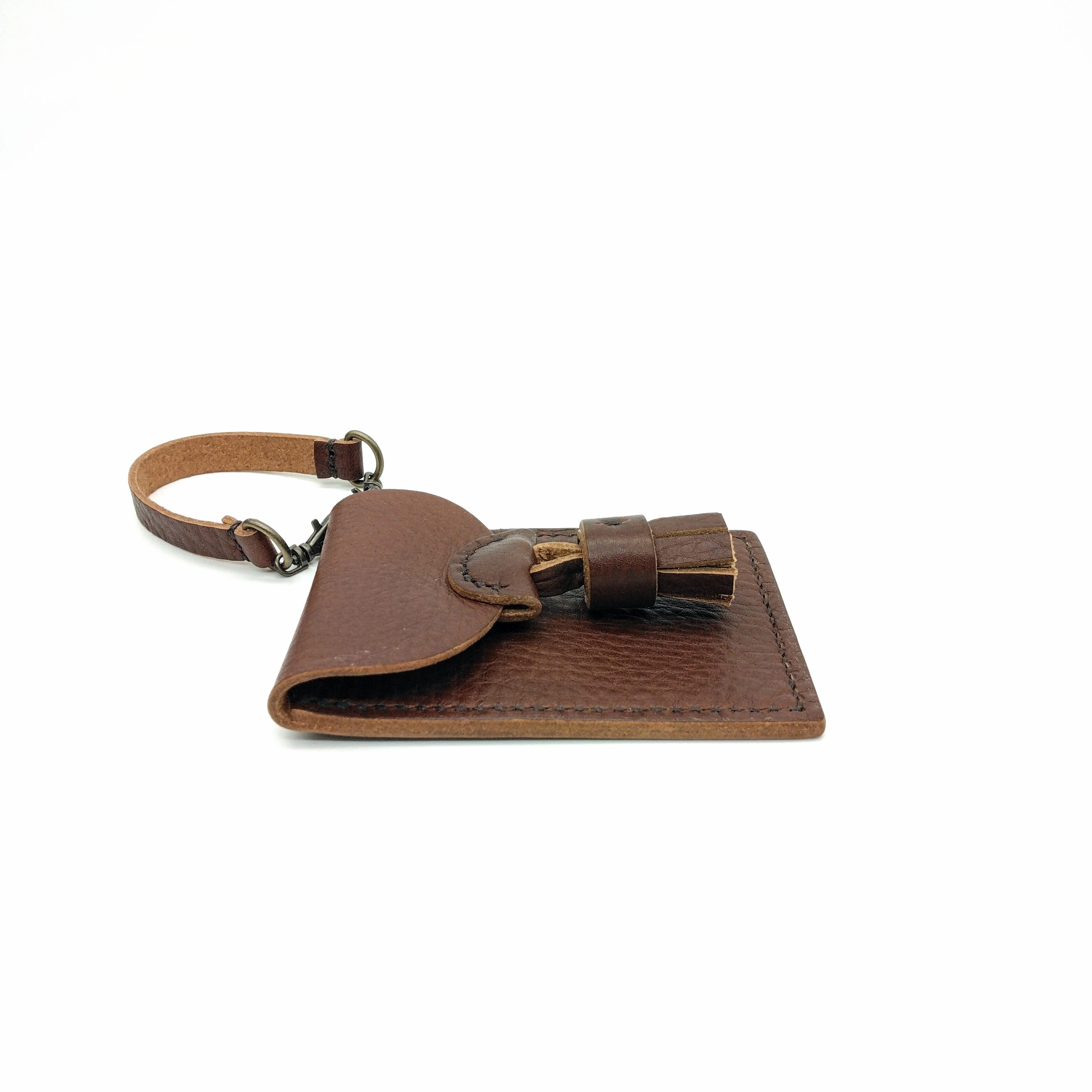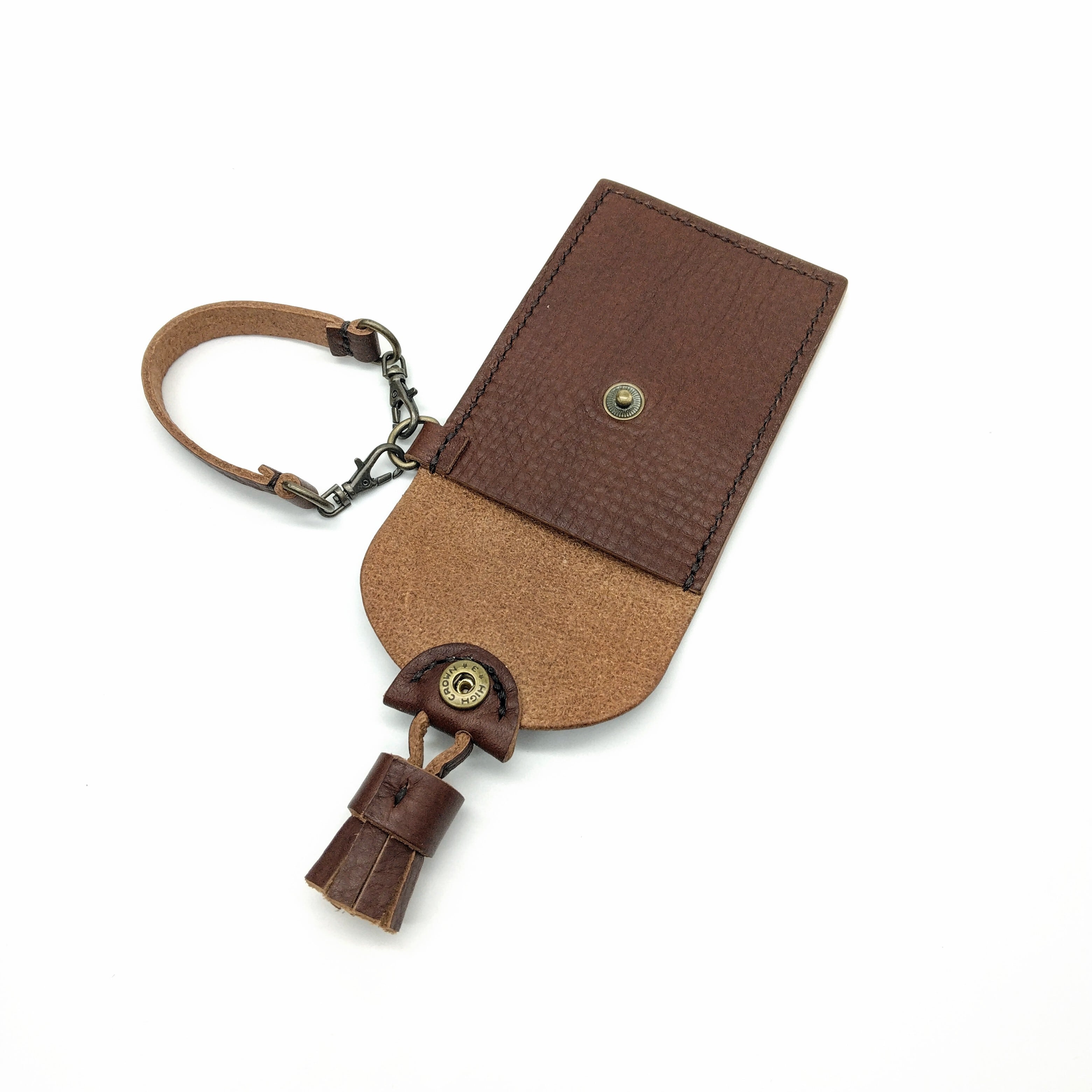 かぶせ部分にタッセルを付けて可愛い印象に仕上げたICカード入れです。