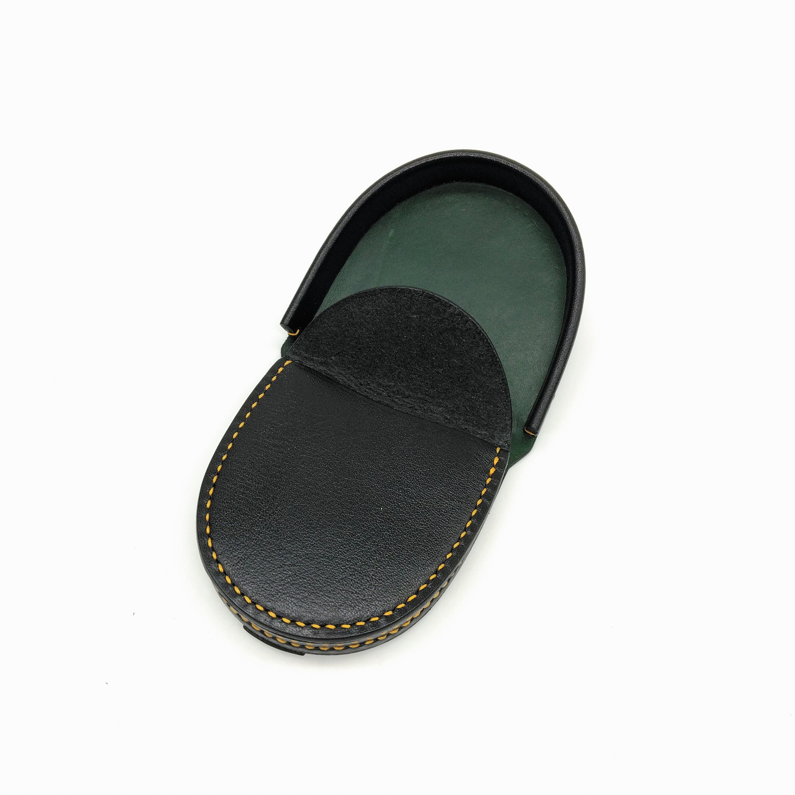 繊維が密なとても堅牢な革を当工房で手揉み(四方八方から革を手で揉みほぐしてシボをつけるやり方)しています。手揉みする事で細かなシボがつき、ハリとコシを残したまま手馴染みがよくなっています。トラと呼ばれる深い縦シワ模様が特長の革で、上品さの中にも革らしいワイルドさを併せ持つ革です。透明感のある深い色味と艶も特長です。使い込む程に味わい深く経年変化していきます。