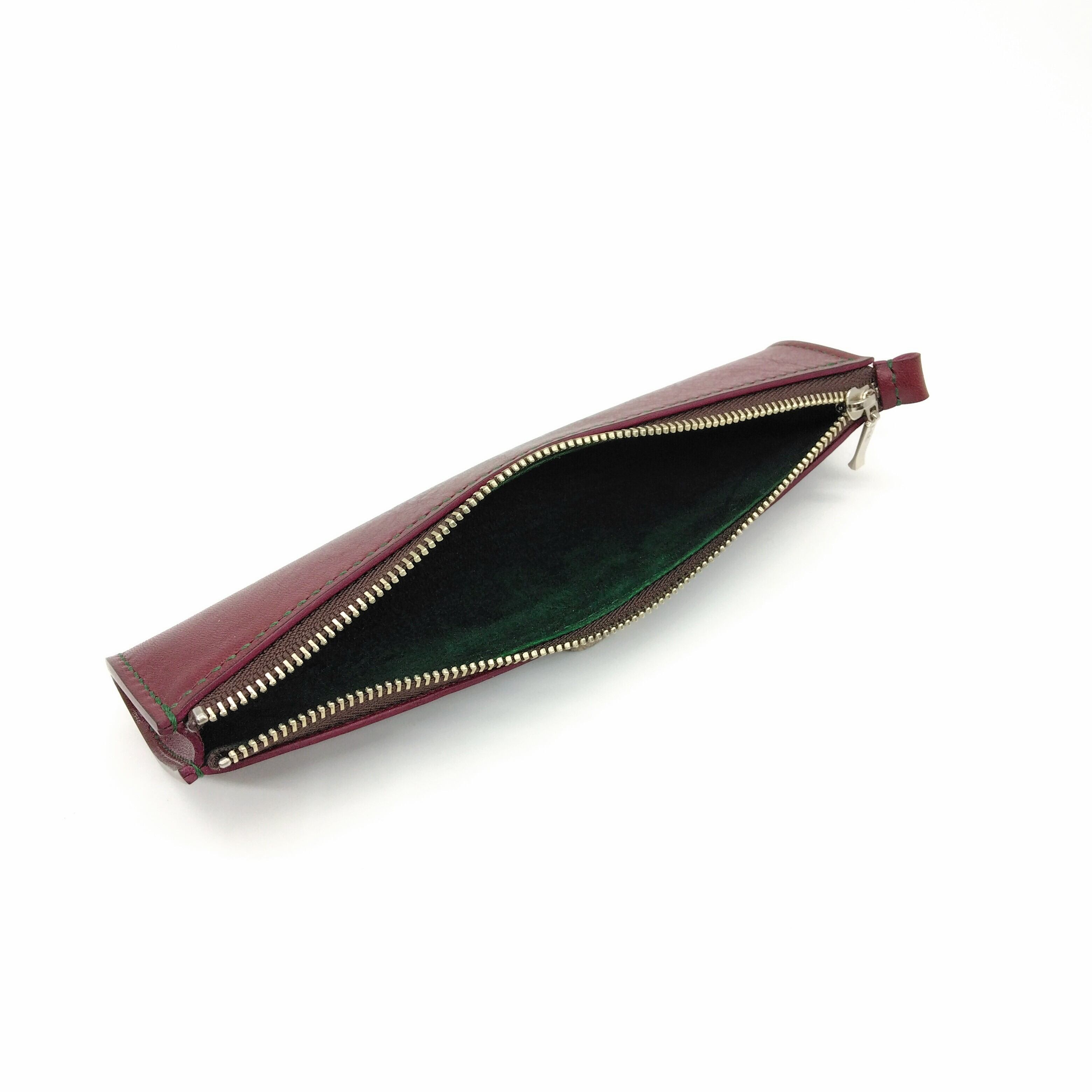 すっきりとしたデザインの細身のペンケースです。内側にはスエードを貼り上品な印象に仕上げています。
