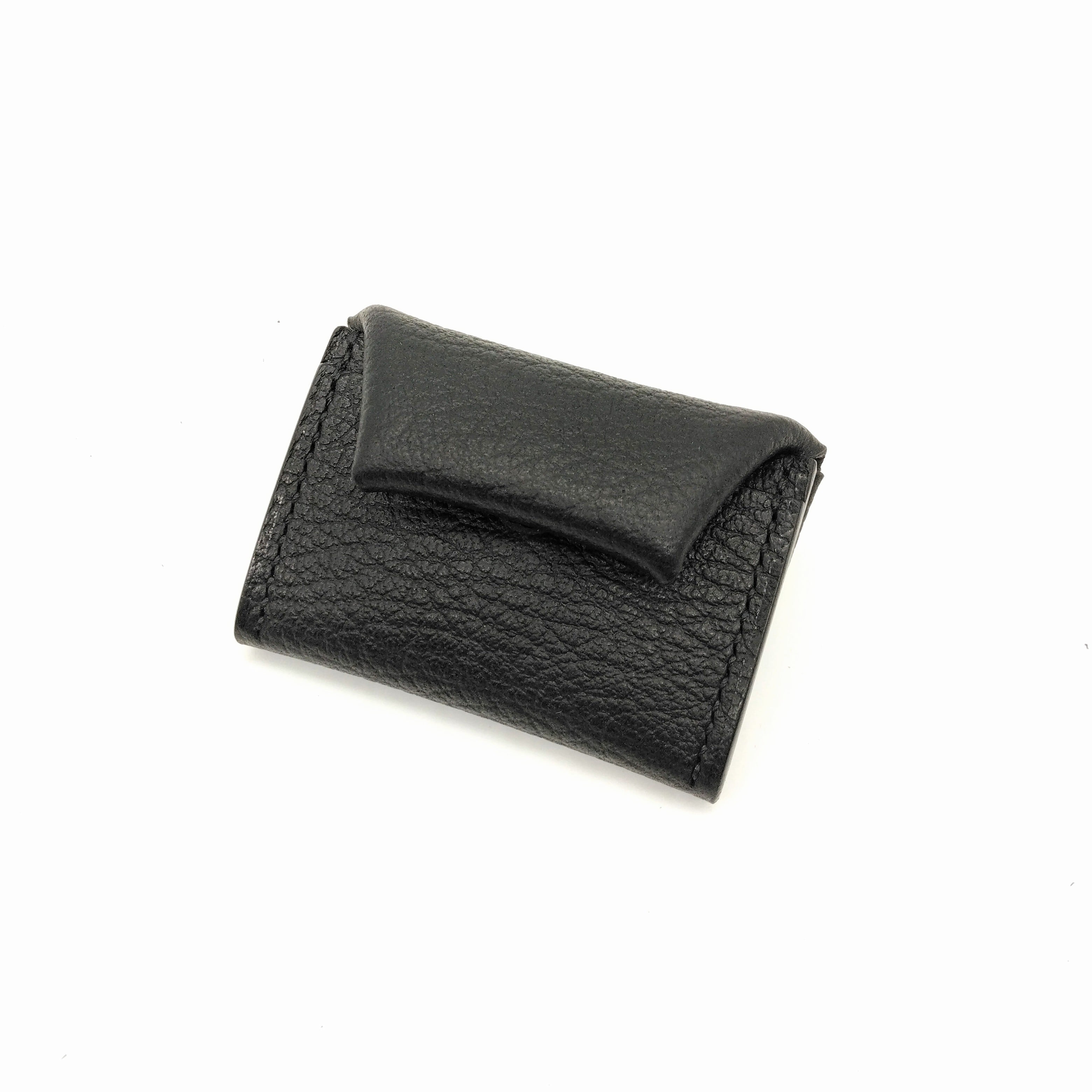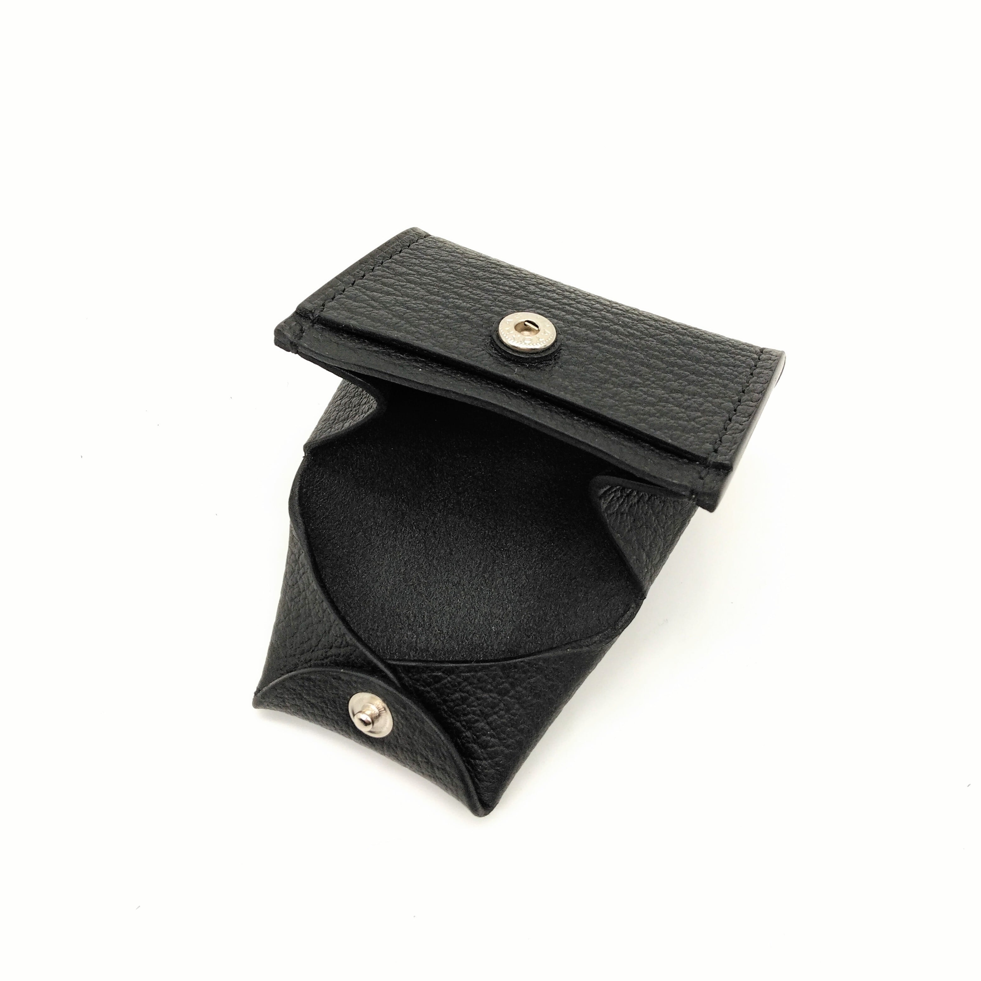 革を折りたたみ横を縫い、じゃばらに開くような作りになっています。収納部分は大きく開くので小ぶりですが小銭収納枚数は20~30枚と十分な収納力です。