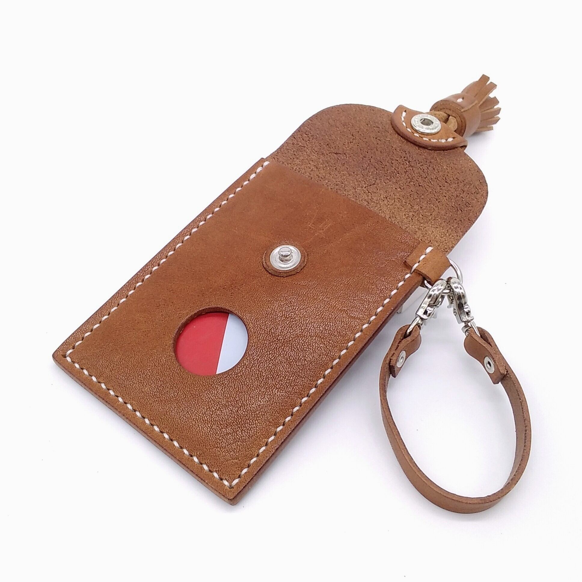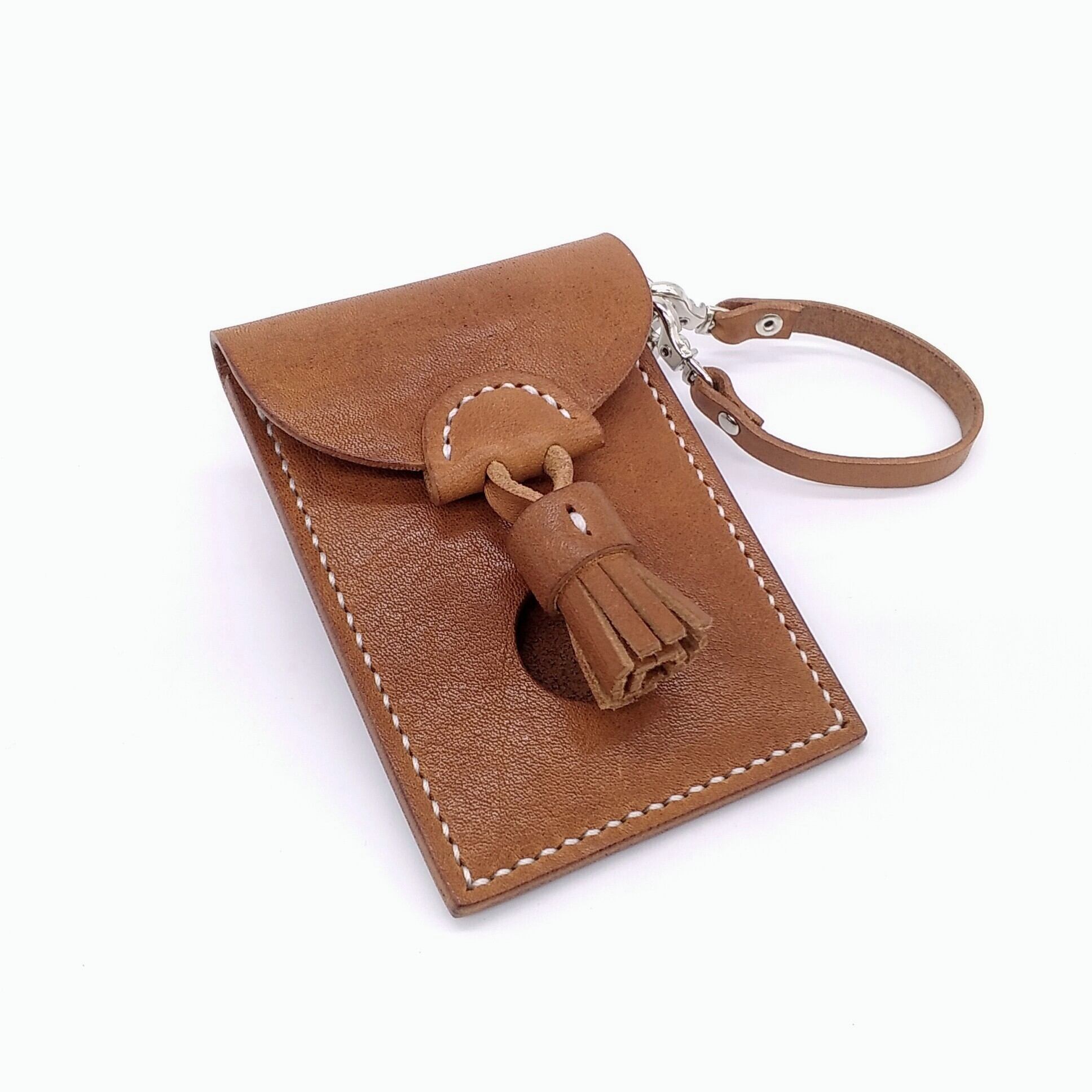 かぶせ部分にタッセルを付けてホワイトステッチがアクセントのナチュラルで可愛い印象に仕上げたICカード入れです。